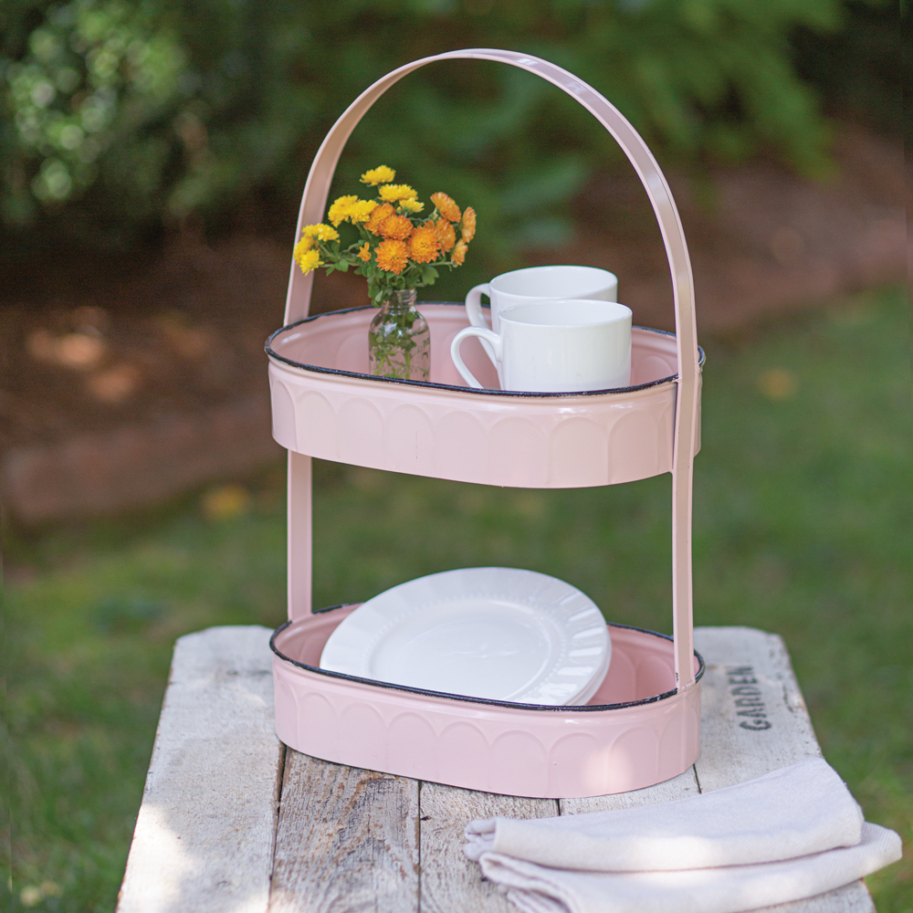 Home > Two-Tiered Oval Pink Tray